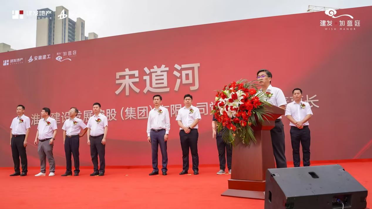 儀式上,淮南建發(fā)房地產開發(fā)有限公司項目總經理戴建新、安徽建工集團總承包公司黨委書記、總經理傅宏林、淮南建發(fā)集團黨委書記、董事長宋道河先后致辭。