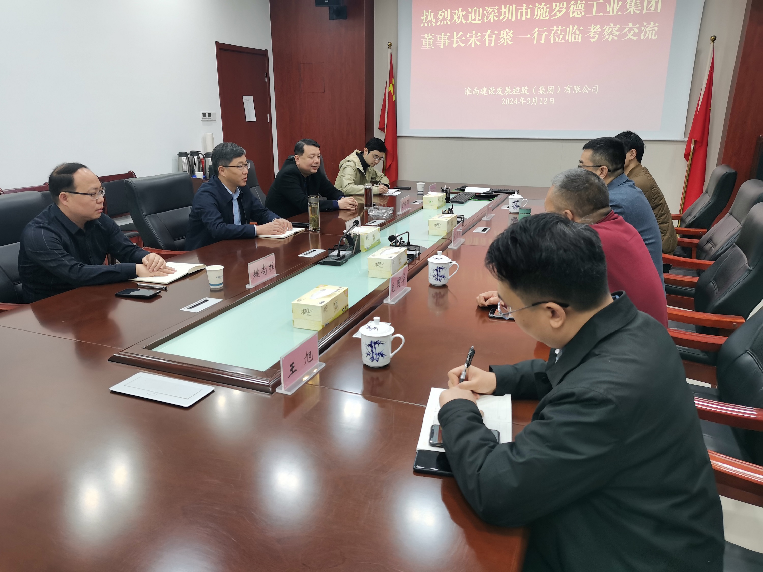 3月12日上午,深圳施羅德工業(yè)集團(tuán)董事長(zhǎng)宋有聚一行到訪淮南建發(fā)集團(tuán),與集團(tuán)黨委書記、董事長(zhǎng)宋道河,黨委委員、董事、副總經(jīng)理宮福頂,就施羅德工業(yè)集團(tuán)在淮南投資發(fā)展進(jìn)行了深入交流。