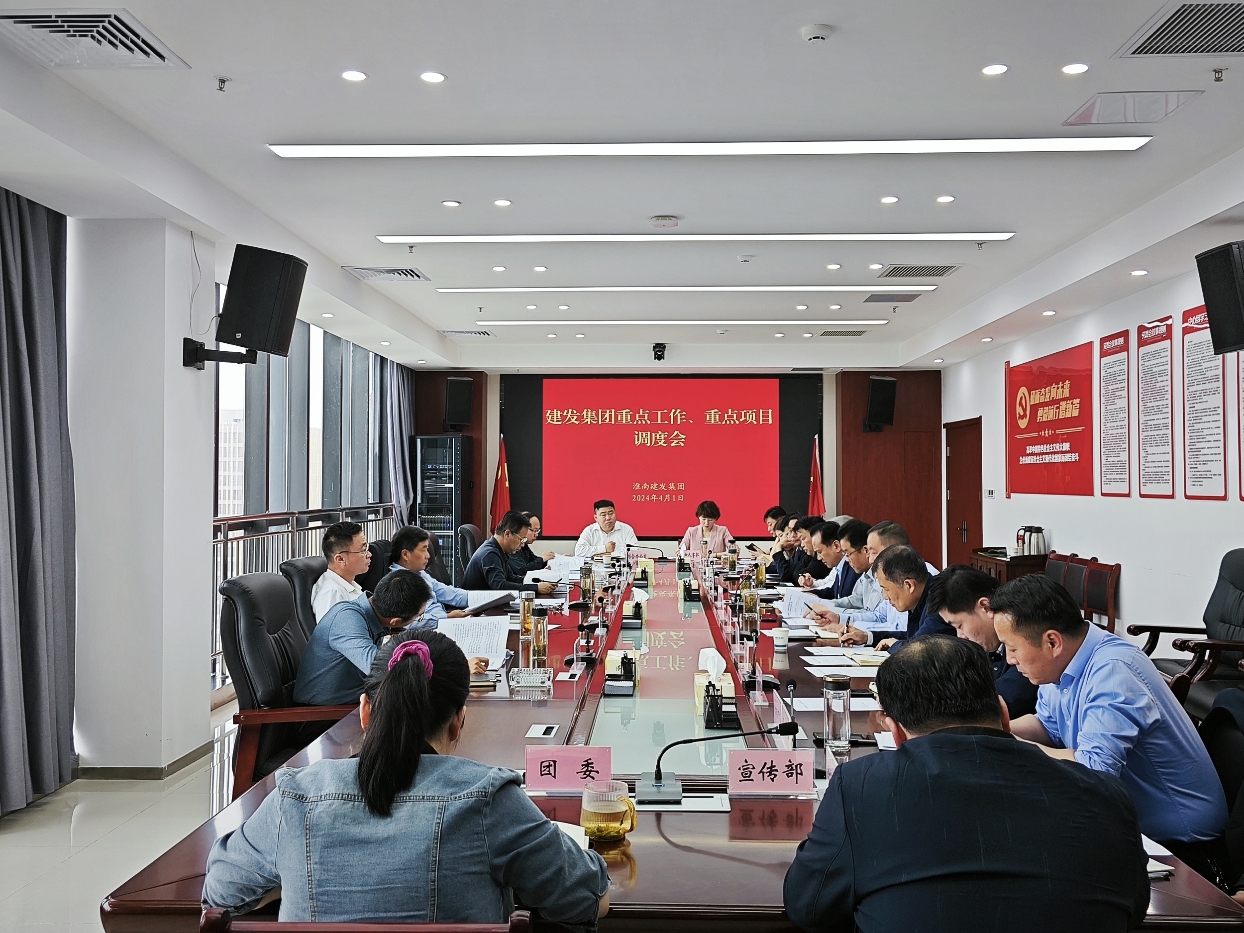 2024年4月1日下午,集團(tuán)公司在2213會議室召開重點工作和重點項目調(diào)度會,黨委書記、董事長宋道河主持會議并講話,集團(tuán)公司班子成員,各子公司和部室主要負(fù)責(zé)人參加會議。